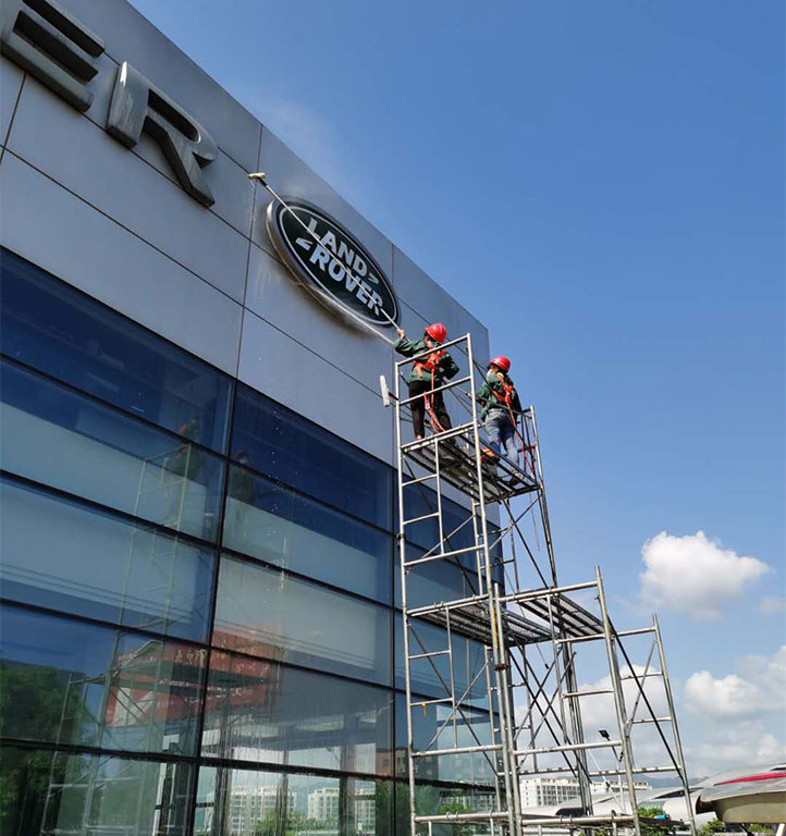 福州潔麗保潔公司承接福州青口路虎車行保潔,專業(yè)的外墻維修施工資質(zhì),登高作業(yè)人員的保險(xiǎn)、上崗證;長期為企業(yè)事業(yè)單位服務(wù)于外墻清洗保潔。